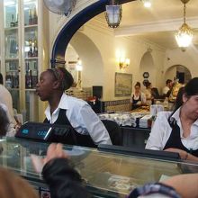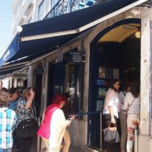 ブルーとホワイトのストライプが目印のパステラリア パステイス デ ベレン (Pastelaria Pasteis de Belem)はどのガイドブックにも掲載しています。販売員さんも多く、手際も良いのですがそれでも追いつかない人気店です。ほぼ8割がエッグタルトが目的です。