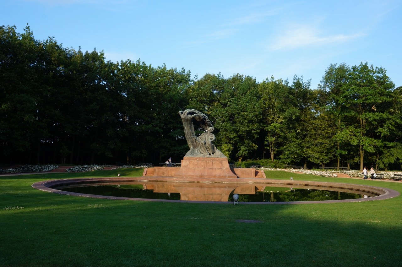 旧市街からは少し遠いのでトラムで行きました。緑がたくさんある公園で、ベンチで休んでいる人がたくさんいました。ここにはショパン像があります。像は柳の木の下に座り故郷の自然を眺めているショパンを表わしているそうです。ここでは無料のコンサートも開かれるそうですがやっていなくで残念だった。