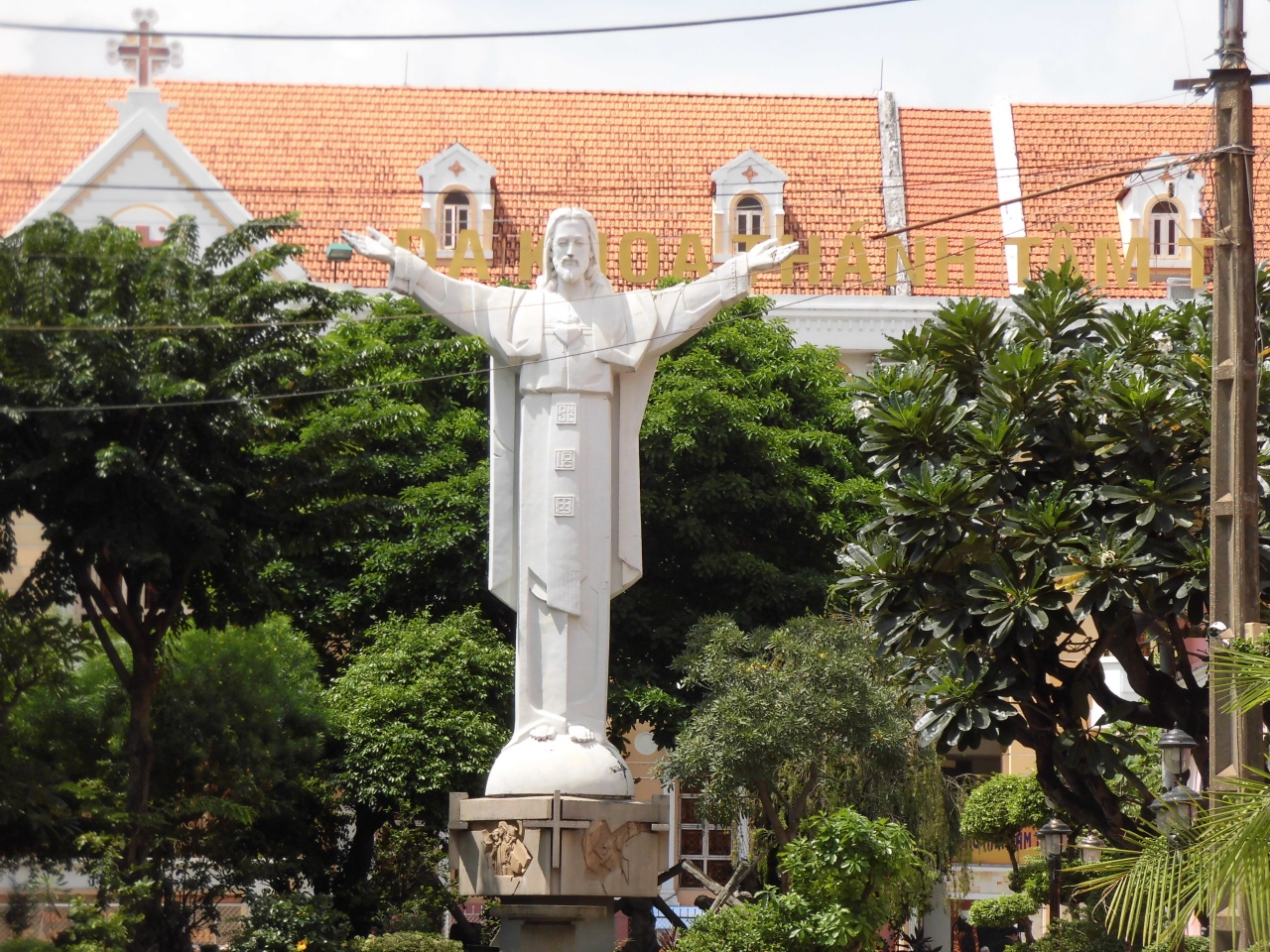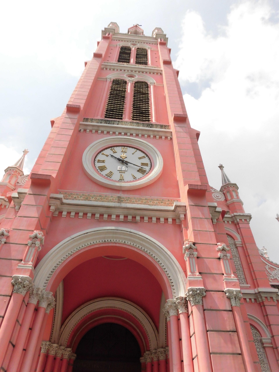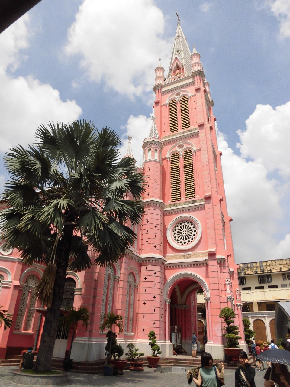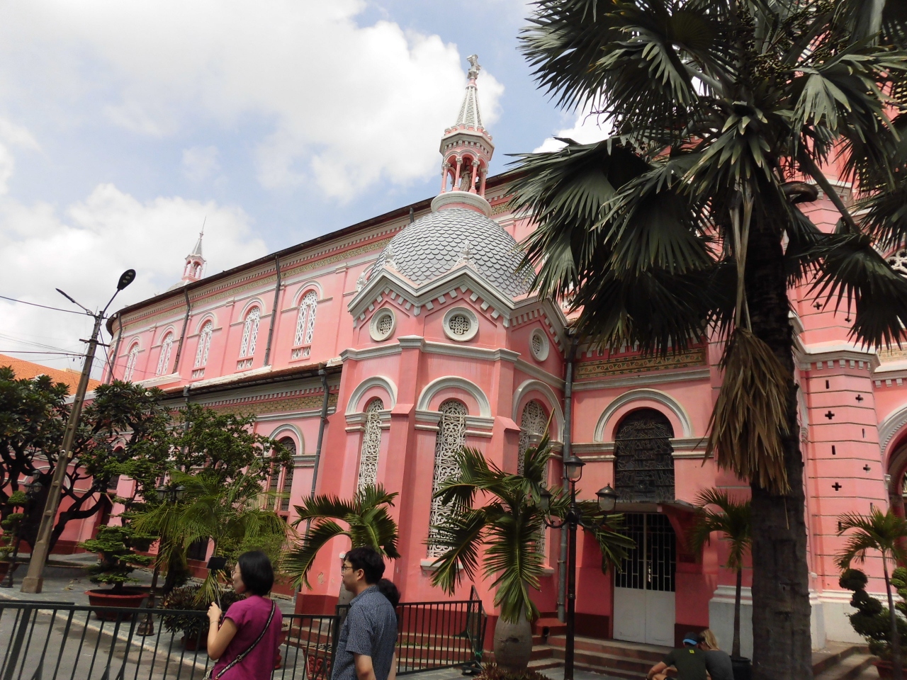 ホーチミンと言えばサイゴン大教会が有名ですが、サイゴン大教会の次に大きい教会がこのタンディン教会です。教会の外壁の色がピンク色で目立っていますが、ローマ建築様式を取り入れて建設された由緒正しい教会です。最近観光客が増えたとのことで、ミサの時間以外は中に入れないようですが、外観だけでも十分見ごたえがあると思います。