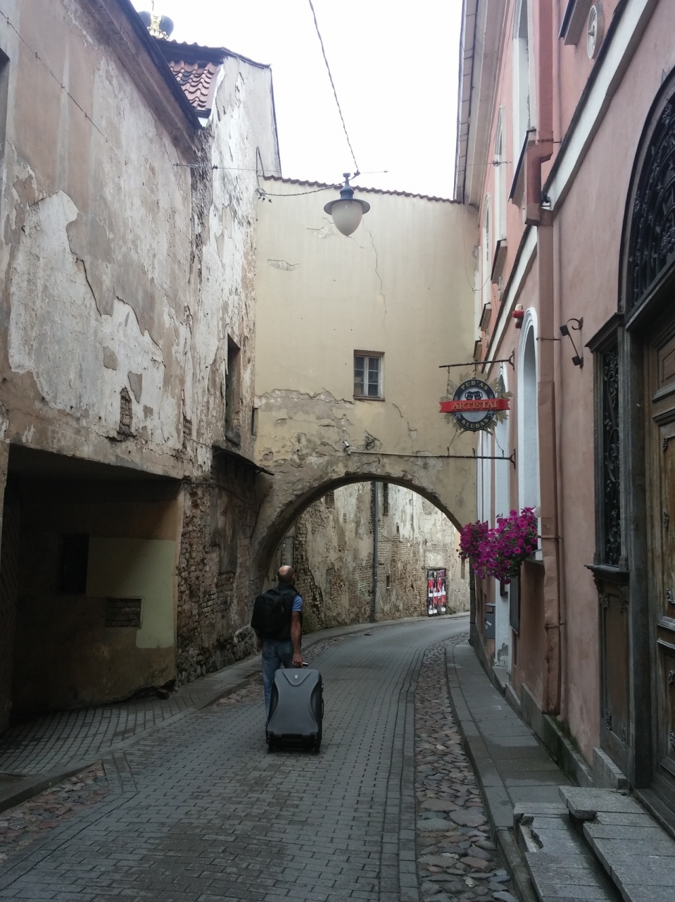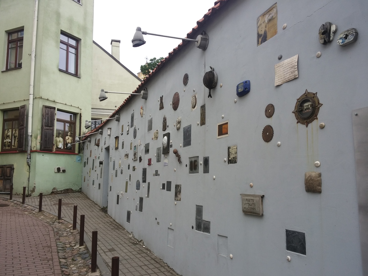 こじんまりとした旧市街ですが、昼間は人でいっぱいです。ぜひ旧市街のホテルに泊まって早朝の散歩を楽しんでください。私は朝食前にくるりと一周しました。約一時間半。華やかさはないものの落ち着いた中世の街並みに出会えます。夜明けの門からウジュピス共和国へむかう通り沿いには面白い壁を見ることができます。壁に埋め込まれた作品はアーティスティック。ゆっくりと時間が流れます
