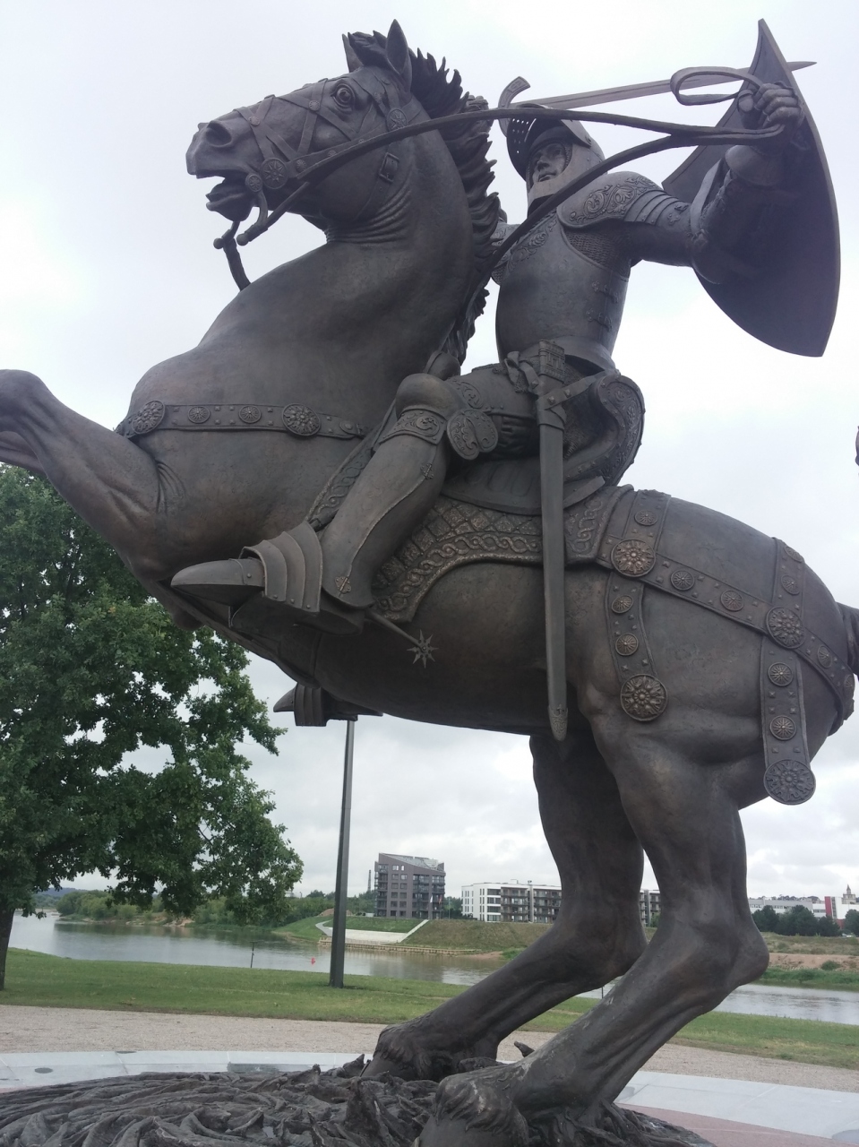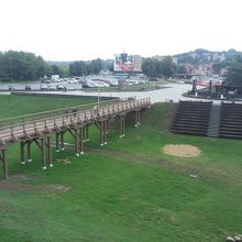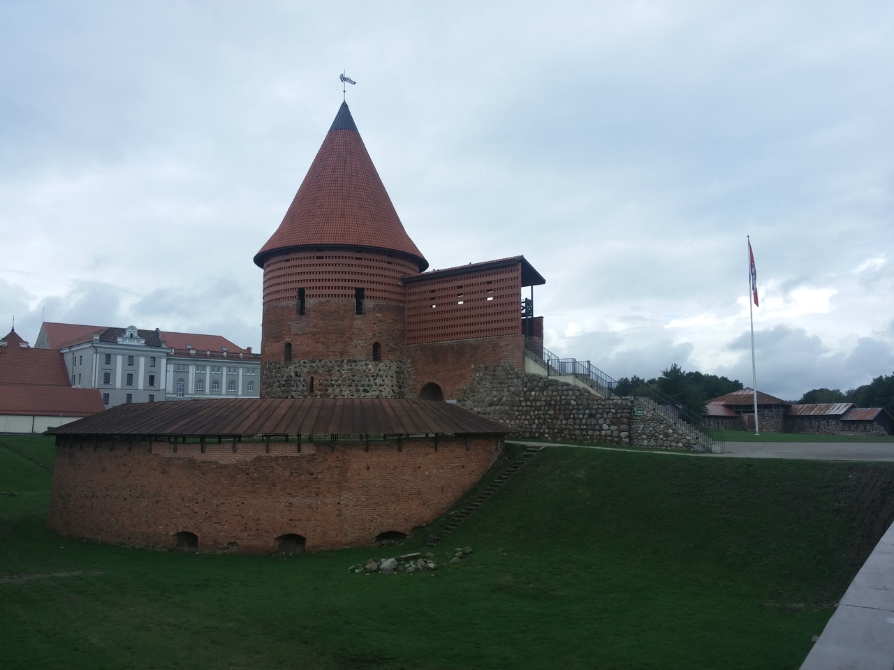 市庁舎広場の東に位置するカウナス城。川沿いに建っているので、川を臨む気持ちのよい眺めが広がります。お城は修復されているので見るべきものは少ないのですが、今は下が芝生になっている木製の橋を渡りピンク色のお城に近づくのは楽しい。土地は平らなのがお城としては珍しい作りでした