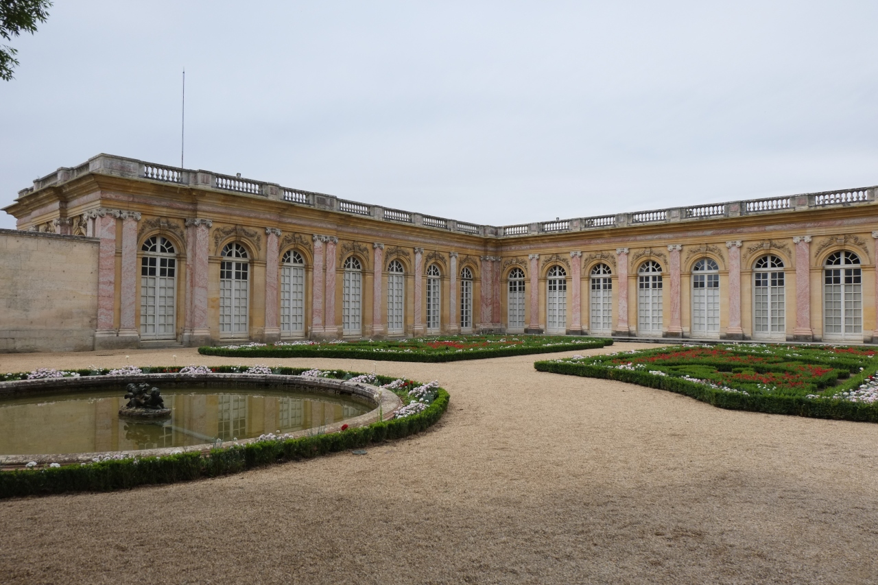 ベルサイユ宮殿からかなり離れたプチトリアノン宮殿の近くにあります。プチトリアノン宮殿とは趣が異なっていて、大きな建物で天井が高く装飾品も豪華な感じでした。庭園の花がきれいに整備されていたのが印象的でした。