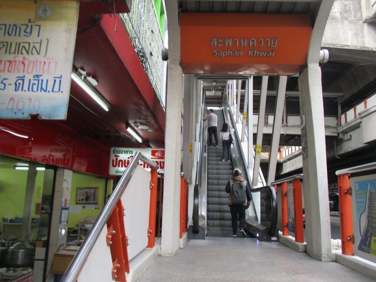 サパーンクワイ駅の改札口は2階に位置しています。地上から駅改札口までエスカレーターがあります。旅行の荷物や買い物の荷物がある場合、移動が大変ですが、楽に改札口まで移動できました。駅ホームはさらに3階、4階に位置しており、一部ではありますが、エスカレーターが完備されていました。