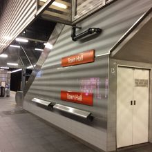 タウンホールのほか、クイーンビクトリアビル、セントアンドリュース教会などの最寄駅です。複数路線が乗り入れている駅なので、モニターでプラットホームをよく確認した方が良いです。