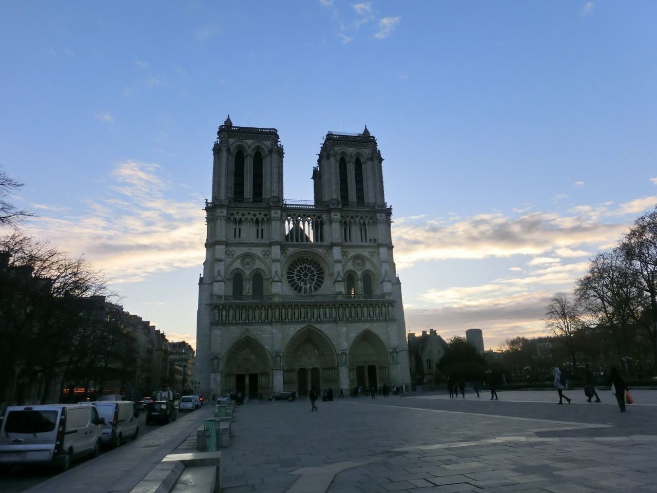 ノートルダム大聖堂の塔に上るためには早めに並ぶのがお勧めと聞き、早めにやってきました。9時ちょっと過ぎくらいかな。11月の朝はまだほんのり薄暗く、人もまばらです。