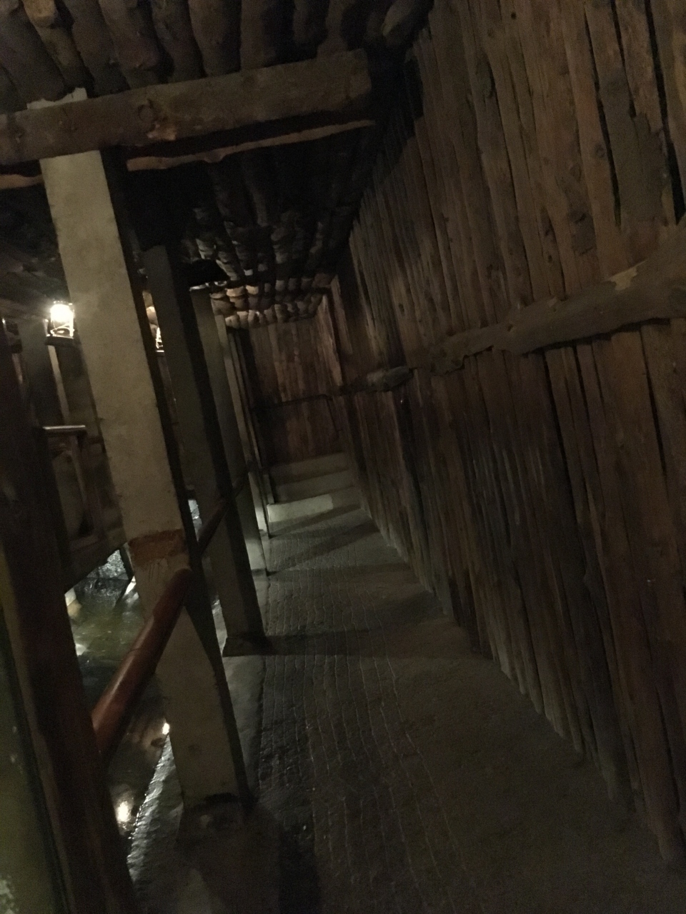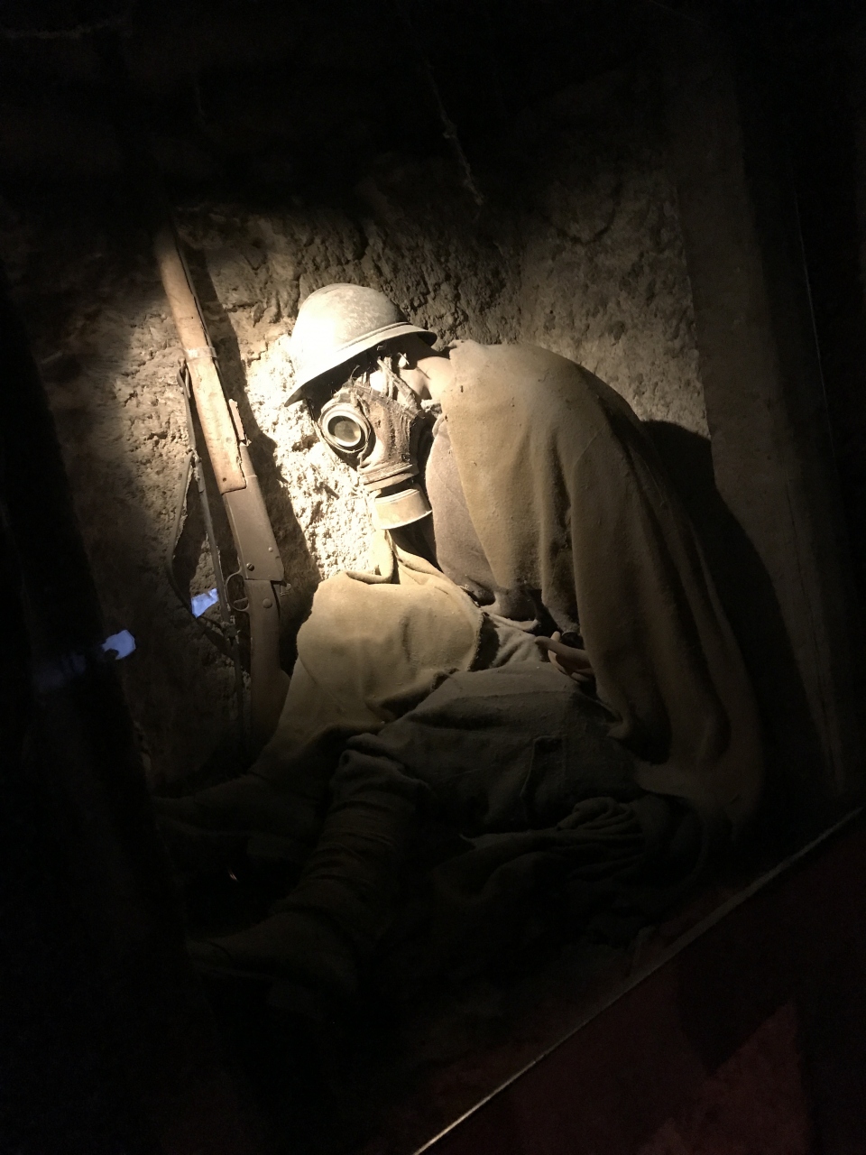 ツアーに参加するつもりだったが、数分前にスタートした後だった。中央広場に面したギフトショップで聞くとツアーに参加しなくてもOKと言われ、日本語での見学案内図をもらった。復元された第1次世界大戦の防空壕は完全に傾いているため、何かに掴まらないと進むことができない。気持ち悪くなって、外に出た時にはしばらく座り込んだ。歴史好きには興味深いと思うが、三半規管が弱い方は要注意。