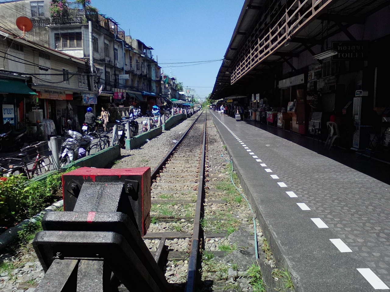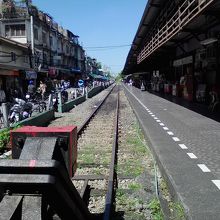 マハチャイ線は単線でホームは一つのみ。ホームにはここは市場かと思えるほどの充実した屋台が並んでいます。まさにバンコクの下町。周辺はのんびりした空気が流れており、古き良きタイが残っています。
