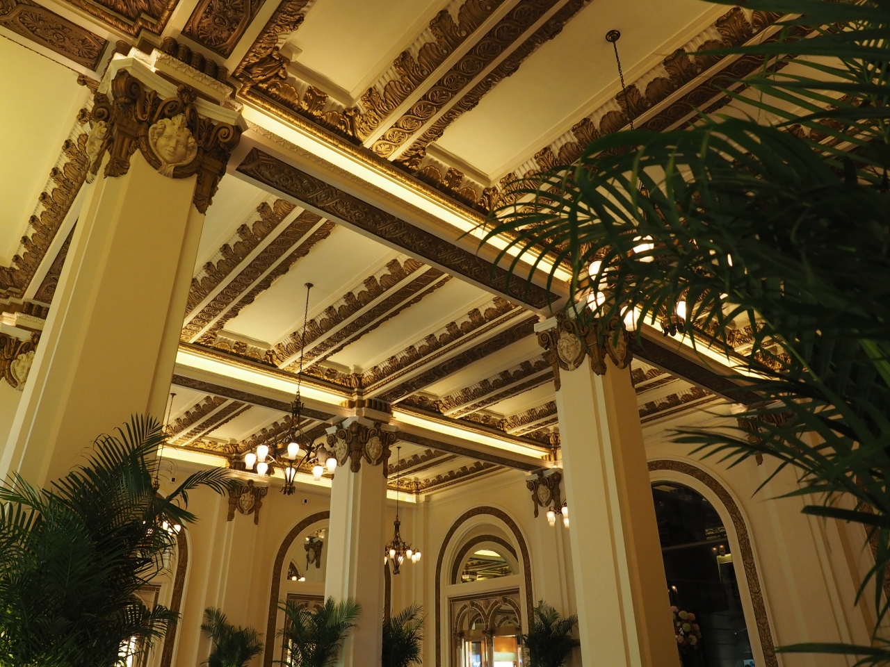 ザ・ペニンシュラ・ホテルのカフェです。天井が高く、クラシックな装飾が施された雰囲気はすごく素敵でした。アフタヌーンティーはすごく混むようなので、待たずにゆったりした雰囲気を楽しむのなら、夜、夕食の後のお茶利用がおすすめです。空席が目立つくらいの混み具合で、のんびりできます。