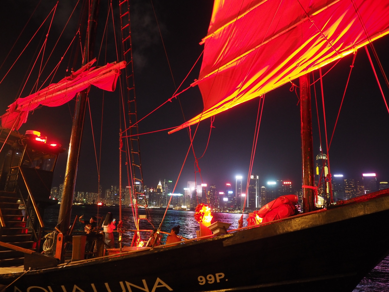 ヴィクトリア湾のクルーズ船です。1時間に1本の割合で昼夜出向していますが、香港の夜景を楽しむのにちょうどよいので、夜の利用がおすすめです。(時間帯によって値段が違います)