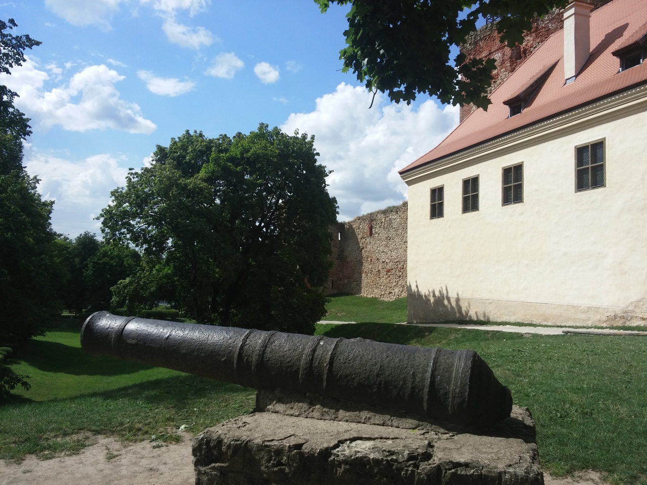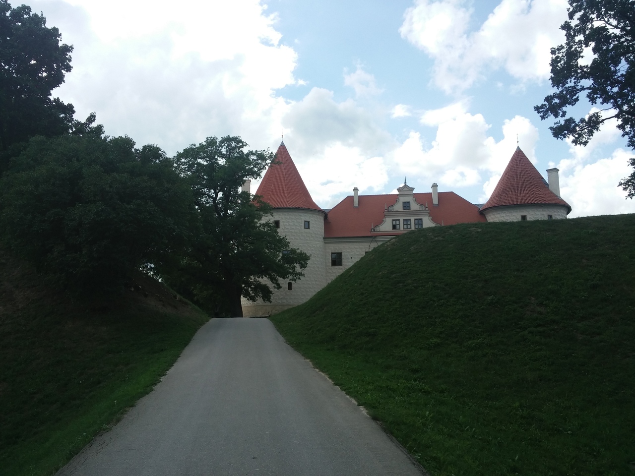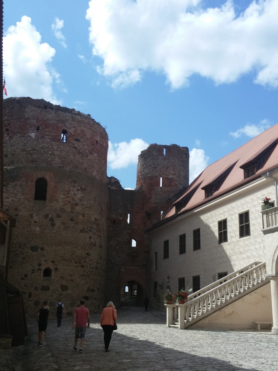 バウスカを流れるメーメレ川沿いに建つバウスカ城。川を眺めながらピクニックをしました。無料駐車場に車を停めてお城に向かって歩くと赤い修復された三角屋根のお城が見えてきます。坂を登ると川を見下ろす絶景ポイント。お城の入り口に到着です。内部は博物館になっています。遺跡としての価値は少なそうですが、ゆっくりと時が流れラトビアの地方に触れることができました