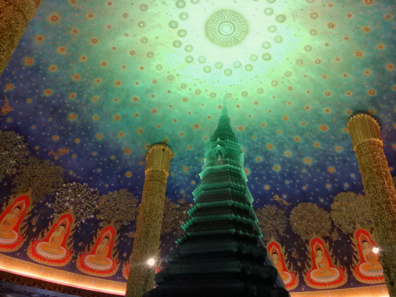 さて、“緑ガラス”ですが…美しい…。吸い込まれそうな雰囲気で何とも安らぎを覚える感じがします。よくこんなの作れたなと思います。人気があるのは日本人の間だけなのか見学者の7割ほどが日本人でした。展示品も合わせて200Bくらいの入場料を取ってもよさそうですが実際は無料です。ありがたい限りです。見学時間は8:00〜18:00です。