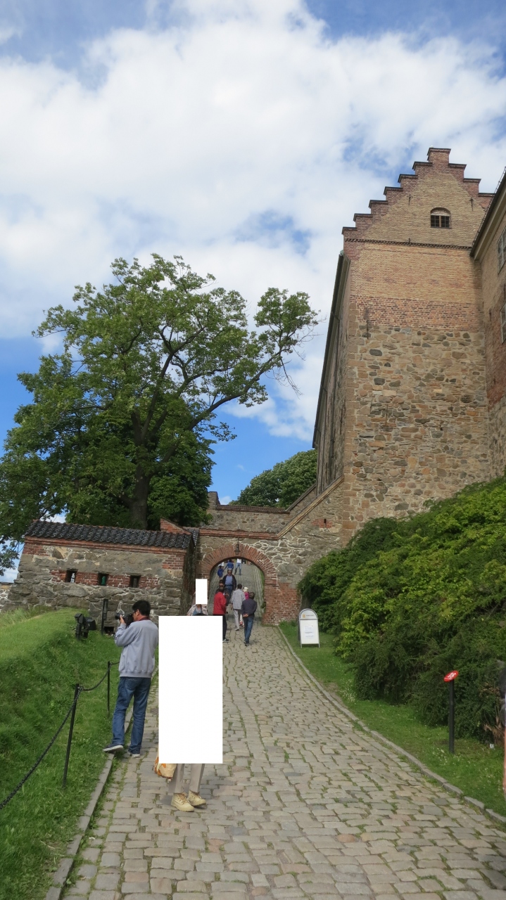 お城の入口には衛兵さんが一人立っていましたが、衛兵さんというより普通の警備の方のようです。すごくフランクな感じがしました。オスロ市庁舎から海岸沿いに歩いて行く道がもっとも迷わずに行ける方法だと思いました。海岸を見ながらのんびり行けます。