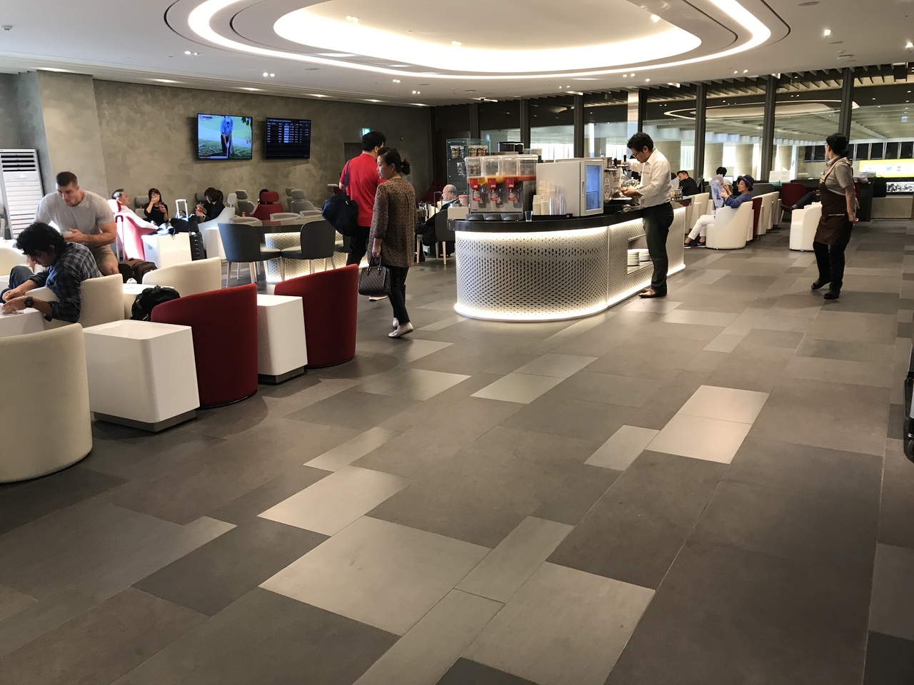 こじんまりとしたラウンジで(しかし、喫煙ルームはやたら広そう・・・)、日本便出発前には椅子取りゲーム状態です。
