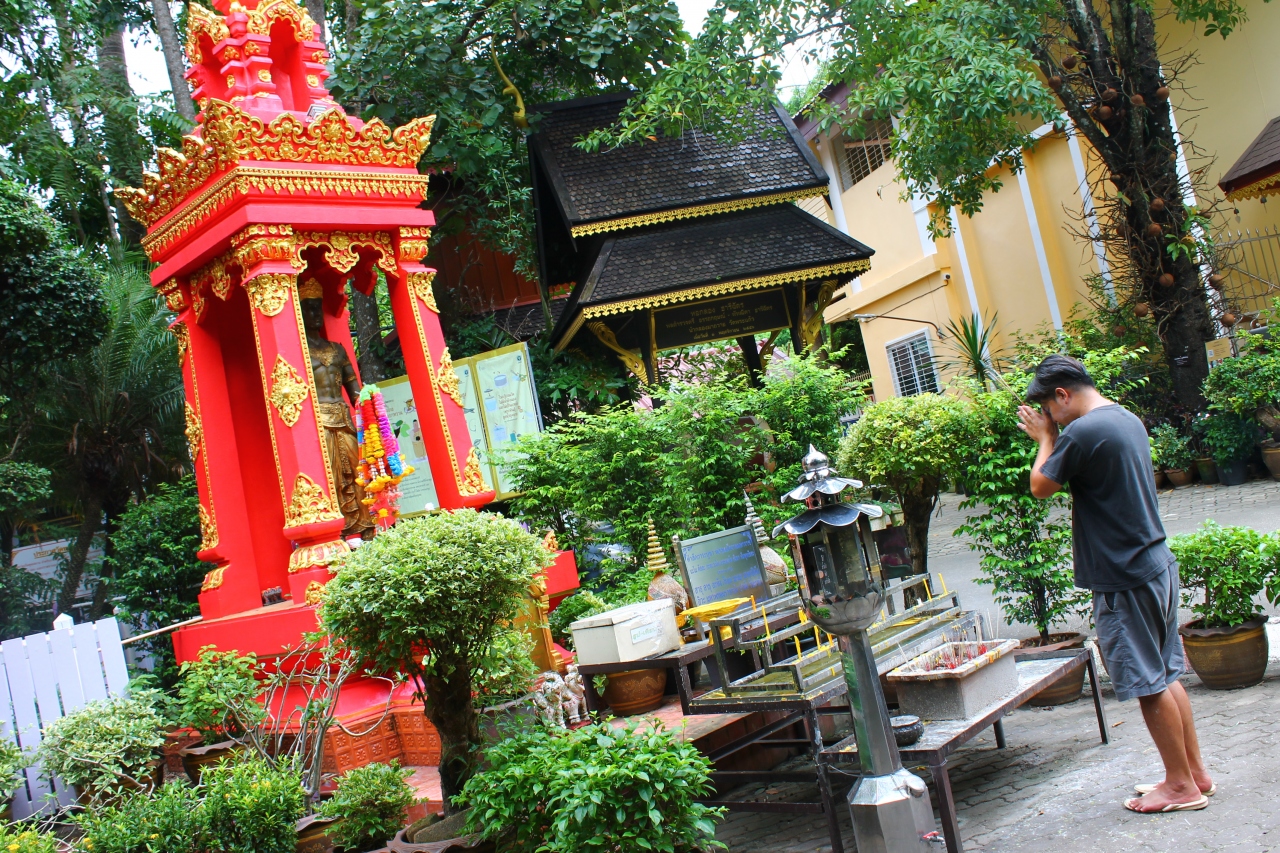 時計塔から北へぶらぶら歩いて10分ほどの所にあります。このあたりは寺が何か所かあるのですが、ここは広い敷地に豊かな木々に覆われ、他とは一線を画す雰囲気です。本尊のエメラルド仏は美しく、バンコクのワットプラケオのエメラルド仏もかつてここに納められていたことがあるとか。チェンライは町の見どころは少ないのですが、ここは行く価値があります。