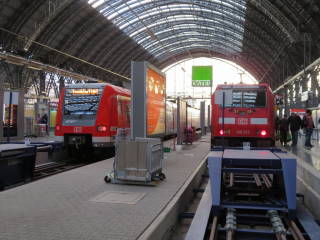 フランクフルトの交通拠点です。DB(ドイツ国鉄)のICE(特急)のほかドイツ南部へのローカル線が発着しています。地下にはSバーンと言われる近郊列車が乗り入れ、フランクフルト空港へのアクセス列車になっています。もちろん地下鉄や路面電車の駅もあって、「フランクフルトの観光はまずここから」と言えるでしょう。駅構内には観光案内所もあるので、観光相談も気軽にできます。DBの大きなインフォーメーションセンターもあって旅行の相談やチケットの購入も。外観はちょっと古めかしい造りですが、機能的にできています。