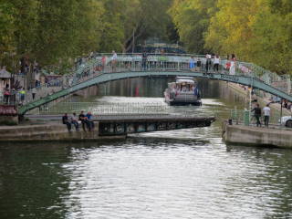 セーヌ川とともに水辺を求めるならばサン・マルタン運河周辺でしょう。バスチーユ広場から65番のバスの乗って十数分。気の向くままに降りると、パリの下町が広がっています。その町中を抜けるとサンマルタン運河にたどり着きます。狭いところでは数メートル。所々に橋が架かり、道路も交差しています。運河クルーズの船が来ると、橋は横に畳まれて、船が通過できる仕組みです。運河周辺にはカフェやレストランが至る所にあって、マルシェも多く、運河沿いに座ってワインを飲んだりする人の姿も。朝から晩まで座っていても飽きない光景が続きます。運河クルーズはバスティーユか上流のビレット公園側にあります。