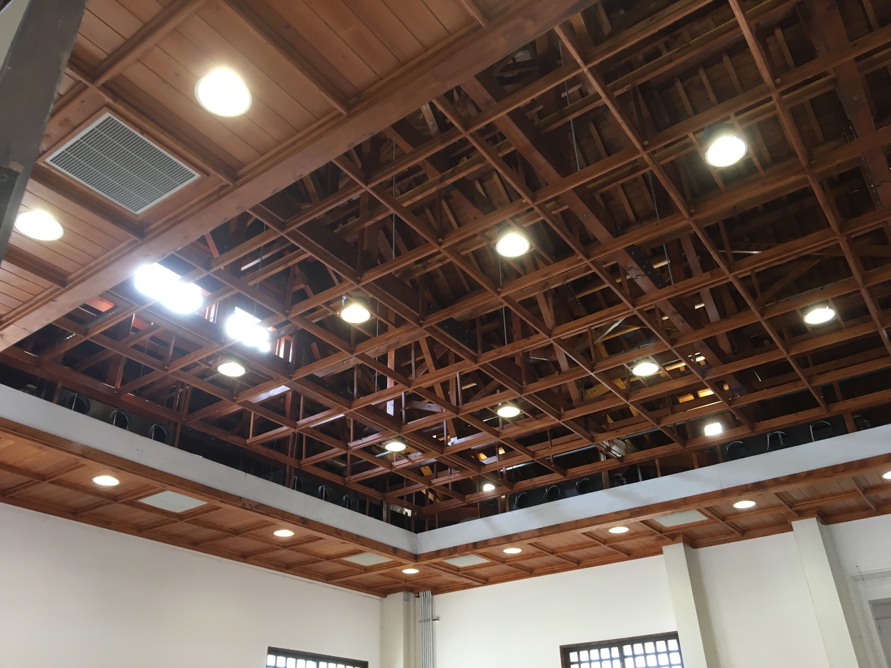 旗山老街を散策した先にありました。スポーツ広場の端です。がっしりした作りの建物です。内部も見学できるようになっていて、団体客がガイドの説明に耳を傾けていました。天井の骨組みが立派なので、内部見学もおススメです。