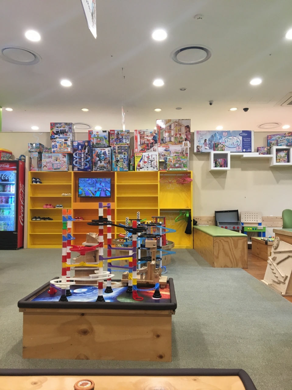 こちらのロッテ百貨店は地下鉄直結なので、旅行中のお天気が悪い日のスケジュールによく利用します。トイザらスや数種類のキッズカフェ、屋上があったりするので、子連れ旅行にはとてもオススメです。今回もキッズカフェに子供を託し、お土産などを買い物しました。子供はアイロンビーズやブロックで遊んだようで、韓国語が分からなくても十分楽しめたようです。