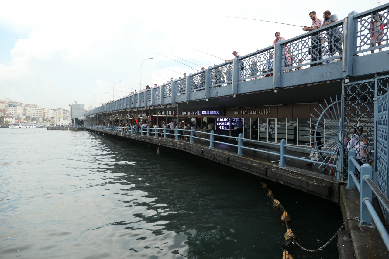 イスタンブールの新市街と旧市街を繋ぐ橋で金角湾の最も東側に架かっています。周囲にはフェリー乗り場やエジプシャンバザールなどのショッピングエリアがあり、沢山の人がこの橋を利用するので混みあっています。