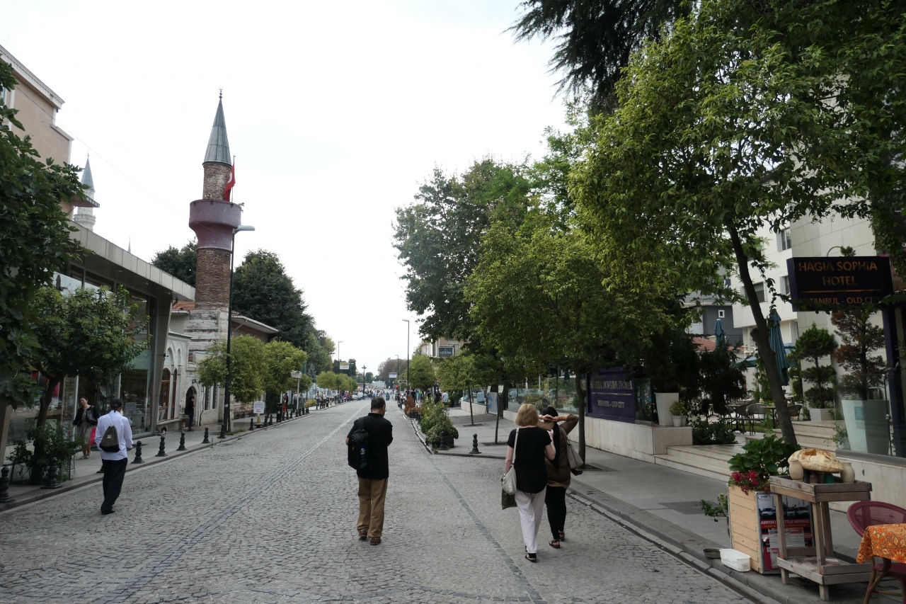 小奇麗な通りで周囲にはホテルやレストラン、そして尖塔のある小さなモスクもありました。ヤレバタンモスク(Yarebatan Cami)で、モスクに付属した有料トイレがありました。地下宮殿見学者の利用頻度が高いようで、中国人団体さんが利用していました。宗教活動以外のモスクビジネスとして面白い、と思いました。