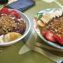 ハワイで取れたハチミツがたっぷりという口コミ通り、アサイーボウルの上にはハチミツタップリで見た目がイマイチだったけど、たしかにおいしい!
