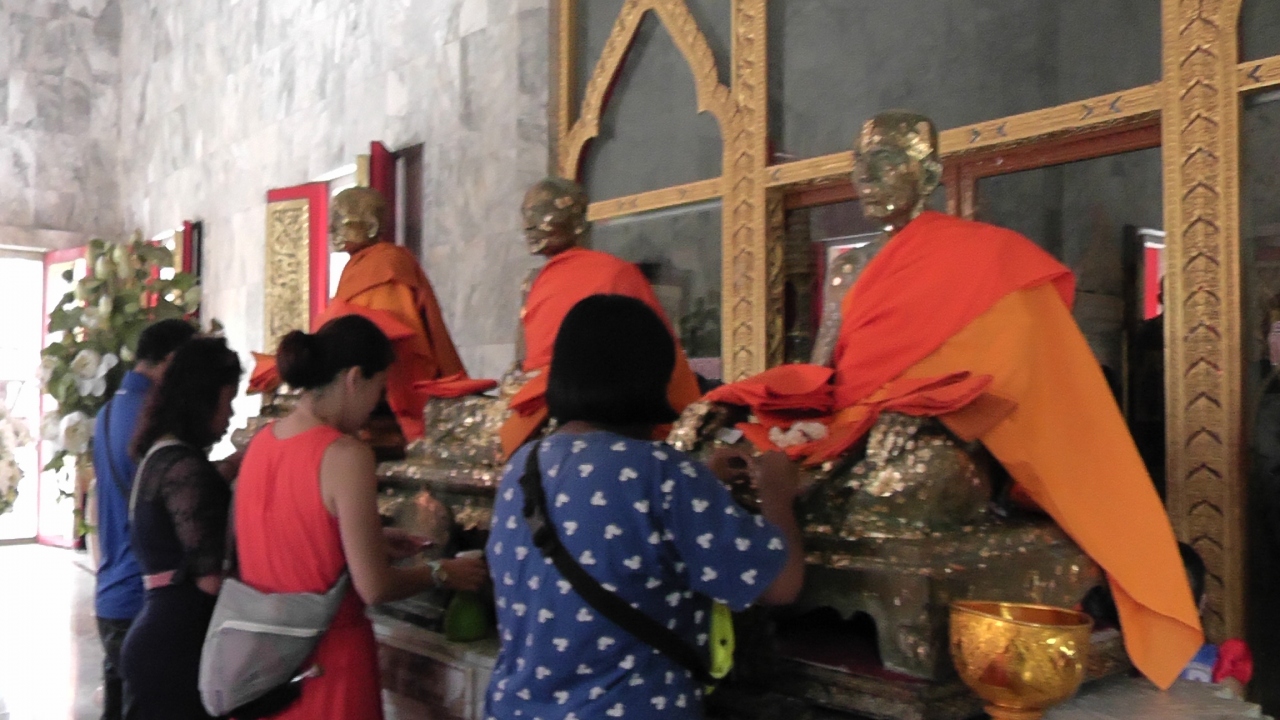 最初に訪れたのが奇跡を起こした僧侶として崇められている「ルアン・ポー・チャム」と「ルアン・ポー・チュアン」そしてその弟子「ルアン・ポー・グルアム」のブロンズ像が祭られている本堂を参拝しました