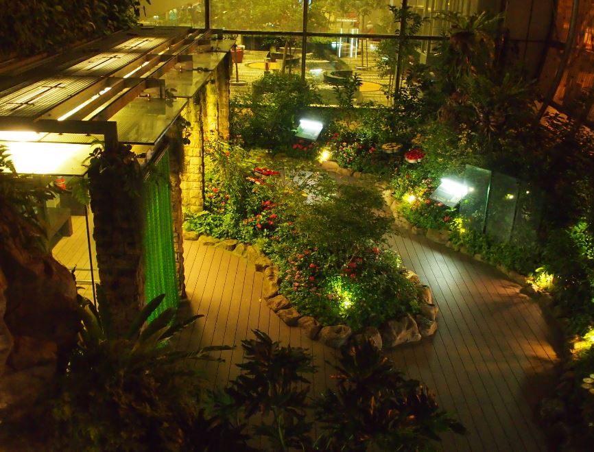 トランジットで4時間ほどの時間があったのでシンガポール チャンギ国際空港内の施設を色々探検しました。バタフライガーデンは夜だったのでほとんど蝶はいませんでした。植物ガーデンの横のバーでちょっと一休み。休むだけのソファーなども十分ありますね。子供用の遊具施設もあります。
