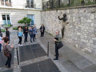 モンマルトルの丘にあるサクレクール寺院の西側にあるマルセル・エイメ広場にあるのが壁ぬけ男の像です。作家マルセイル・エイメの小説「壁抜け男」をモデルに、ジャン・マレーの作による像です。あがきが集まるテルトル広場のそばにあるので探してください。壁の中から男が半身を乗り出すようにした像で、そばにはおしりやバスト、お猿の顔の像もあります。男と並んで記念撮影するのが好例のようです。近くには気の利いたレストランやカフェも多く、ランチに訪れたらいかがでしょうか。