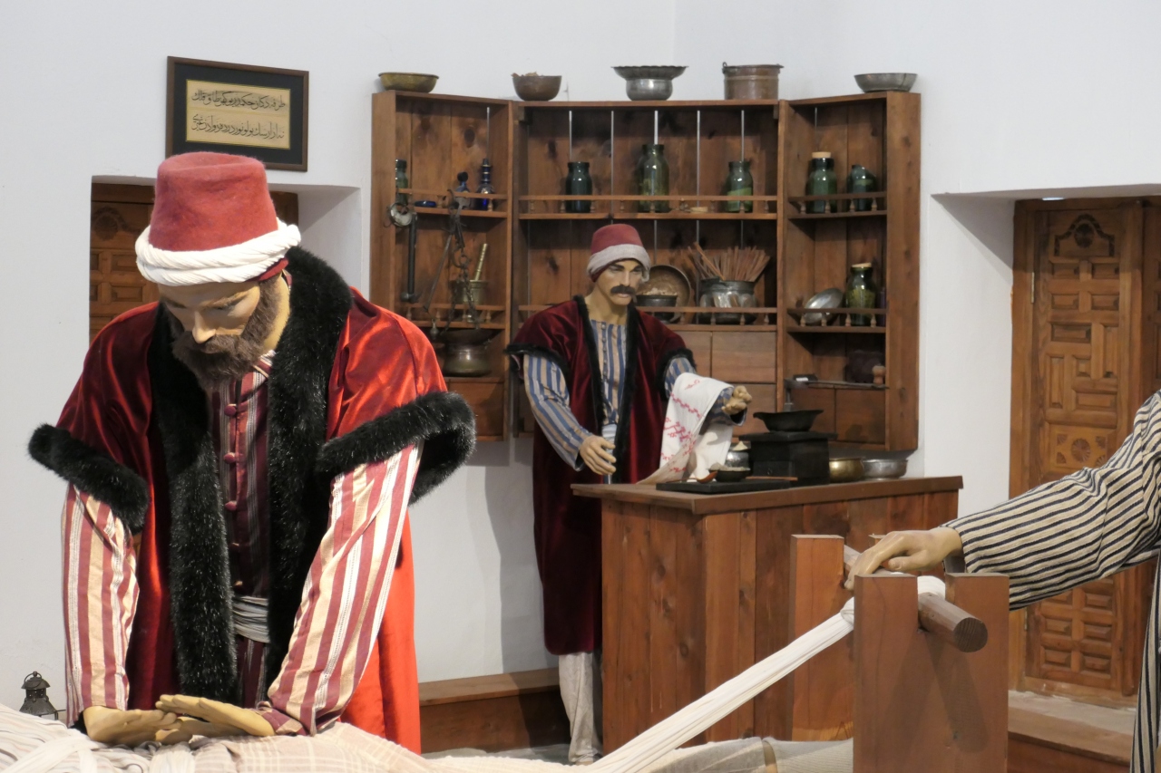 ツアー・ガイドさん案内で訪問しましたが、大変面白い医学博物館でした。正式名称は、バヤズィト 2 世のキュッリイェ ヘルス博物館でモスクに併設されていました。この博物館は2004年にヨーロッパ、そして2007年に世界レベルの優秀博物館表彰を受賞しています。誇らしげな説明パネルが博物館入り口にありました。受賞しただけあって、展示は人形やパネルを使用して工夫がしてあるので、説明(英語もあります)を読まなくても概要を理解できました。トルコの医学はアラビア伝来で、医学書は全てアラビア語で記述されています。医学以外の科学も同様だそうです。