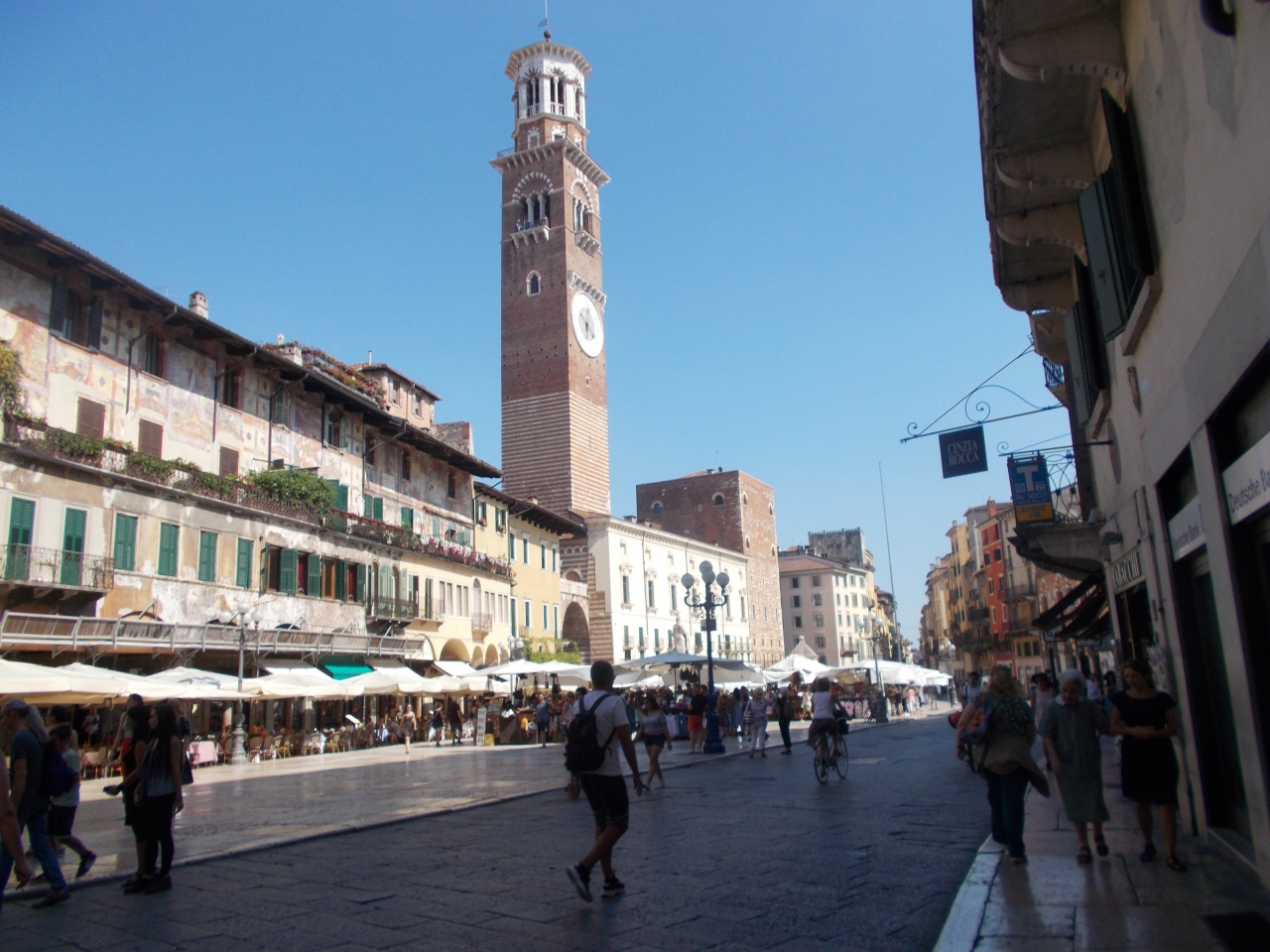 このエルベ広場はかつてフォロ・ロマーノがありました。その後テントでものが売られる場所になり「エルベ」(野菜)が売られたので名前が付いたのです。今は15・16世紀の建物に囲まれている歴史的にも重要な広場です。シニョーリ広場にも接しています。