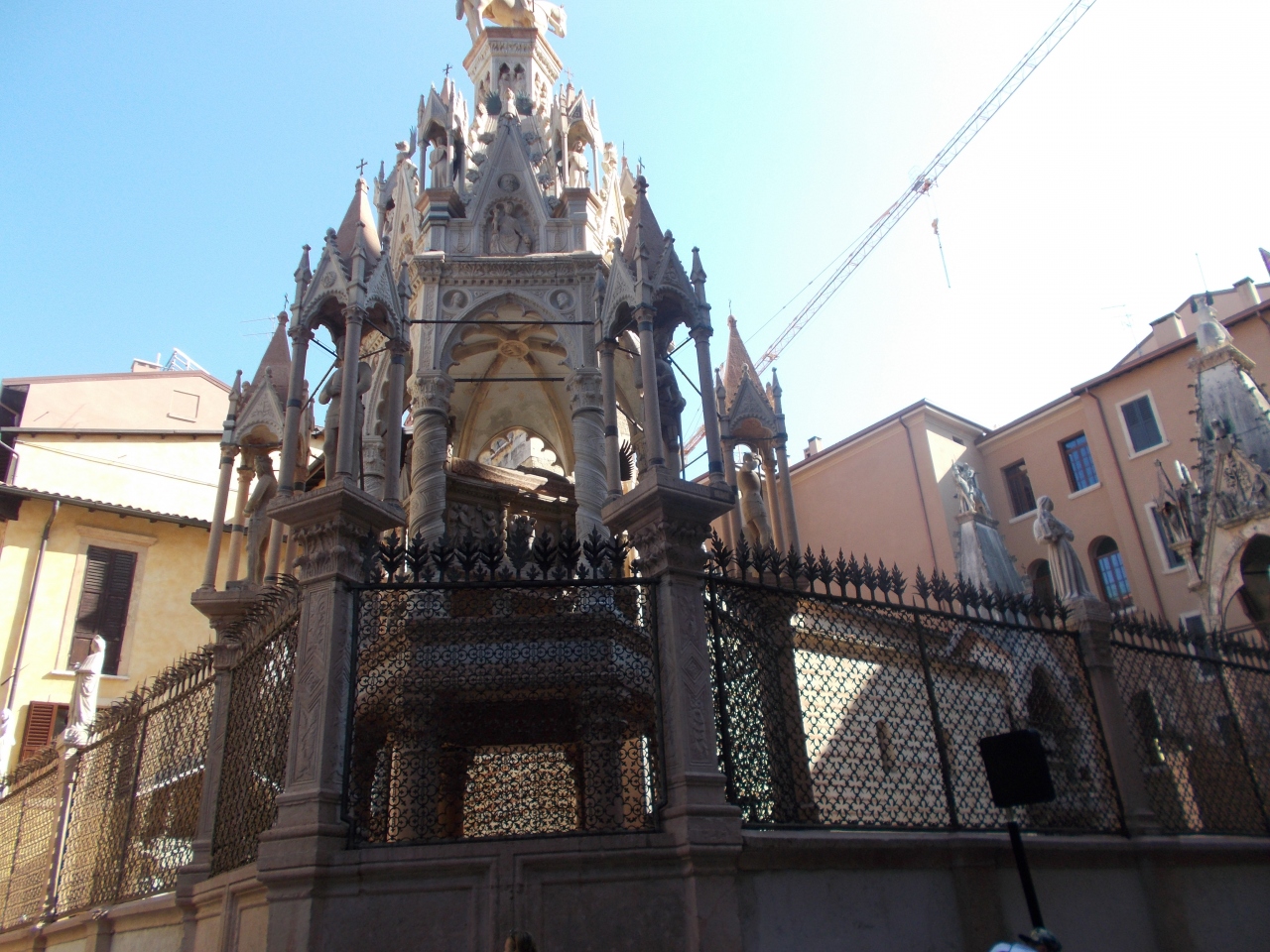 このスカラ家の廟はシニョーリ広場の東側にあるサンタ・マリア・アンティカ教会の前にあります。この廟は鉄の柵で囲まれています。墓は石棺とその上に騎馬像で飾られた碑になっています。13世紀から14世紀の百年以上この町を支配していたのです。墓碑も芸術的です。