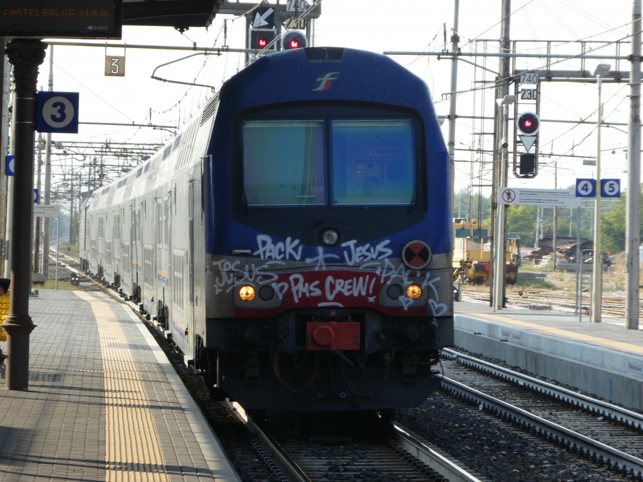 フィデンツァ駅からパルマ駅まで利用しました。この時はスースケースを抱えての移動でしたが、スーツケースのような大きな荷物は、専用の荷物置き場に置くことができます。車窓から見える風景はのんびりとした畑が続き、ゆったりとした感じでした。