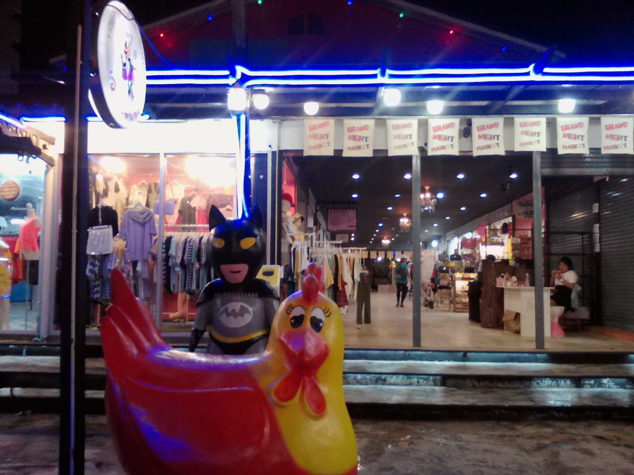 この日は夕方からスコールがありその後も小雨がパラパラ。そのせいなのか時間が早いのかいつもこうなのか、他に理由があるのかわかりませんが何とも寂しいかぎりでした。いくつかの露店は閉まっており客もまばらでまったく活気、賑やかさがない。行ってもテンション下がりまくりです。中心部のナイトマーケットに喰われてしまっているのかもしれません。店としては衣類や雑貨などのお土産類や、屋台や食事、お酒の飲める店などがあります。