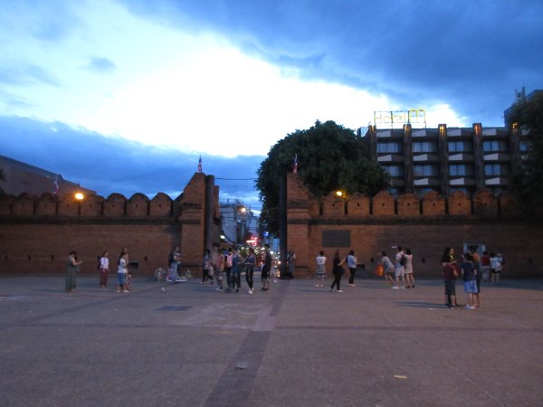 ナイトバザール付近の宿泊したホテルから徒歩でターペー門に向かう際に、逆行する何組もの西洋人旅行者にナイトバザールの所在を訊かれつつ到着しました。