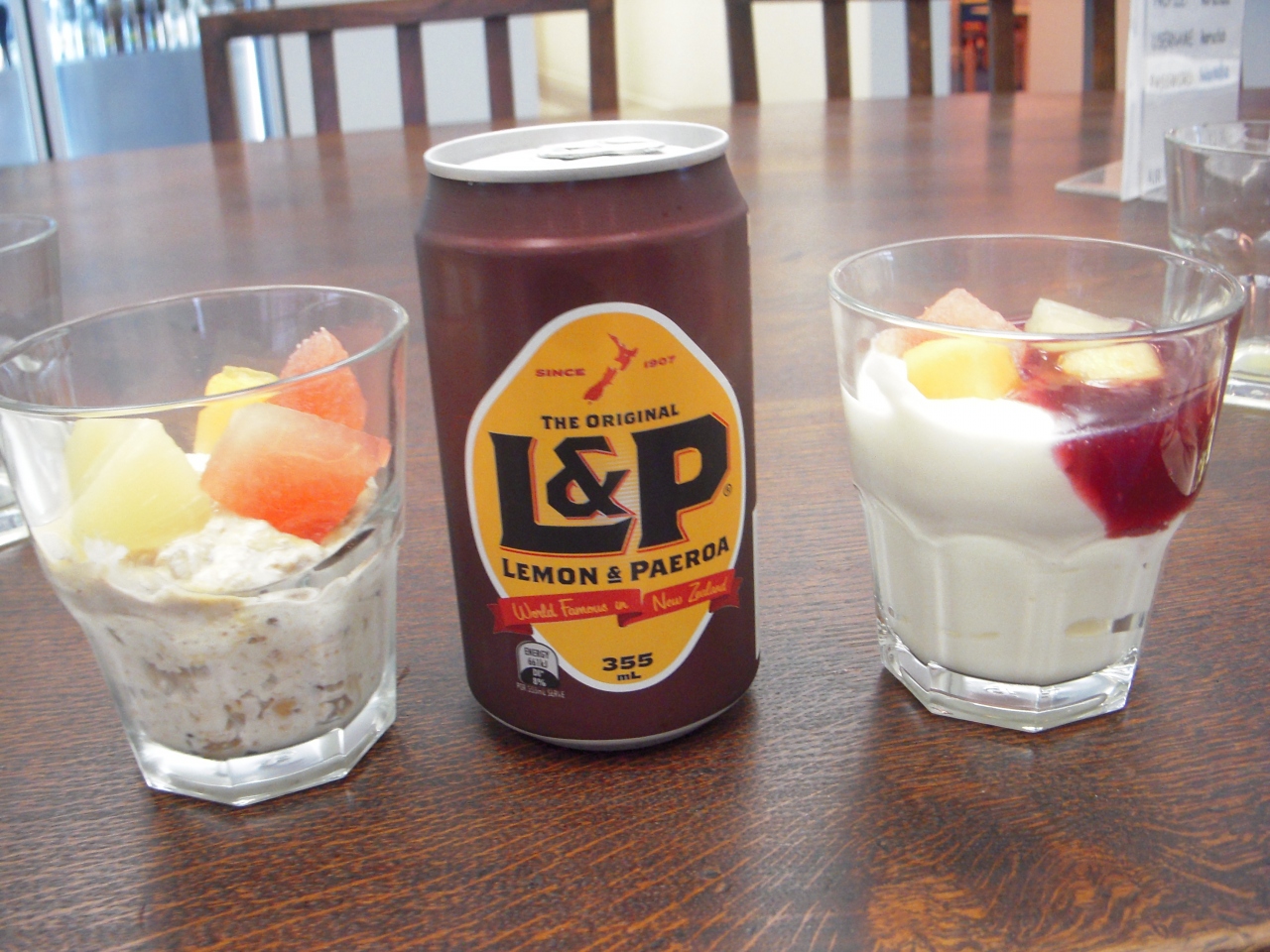 6時過ぎにニュージーランド航空でチエックイン(NZ99便)し、セキュリティチェック後、ラウンジへで軽食とソフトドリンク(L&P)で時間を過ごしました。