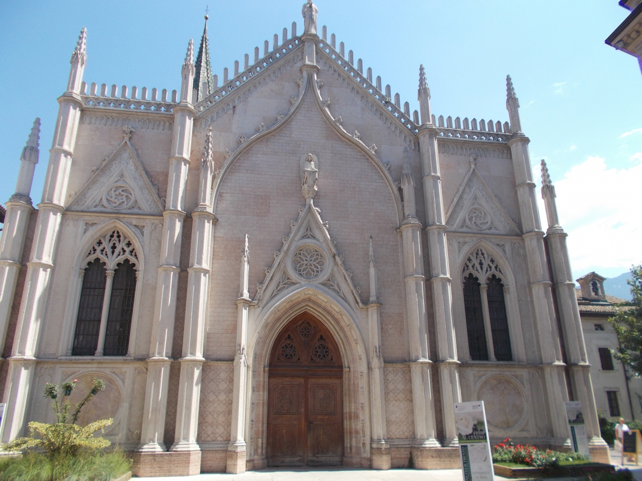 このサン ピエトロ教会はブオンコンシリオ城から近いです。この教会はゴシック様式を基本にですが屋根の形や装飾などがありルネッサンスの様式も入っています。内部も魅力的です。特に祭壇は印象的です。教会の周りは近世の時代のままです。