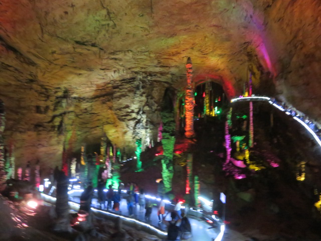 洞内は総延長が7.5キロほどあるようでその広さにはビックリ、洞内に池があってボートを利用して移動しました、殆どがカラフルにライトアップされていて綺麗です、大きな鍾乳石には名前が付いているようです、遊歩道は滑りやすいので気を付けて歩きました、行った時は団体客が多くいましたので賑やかでした。