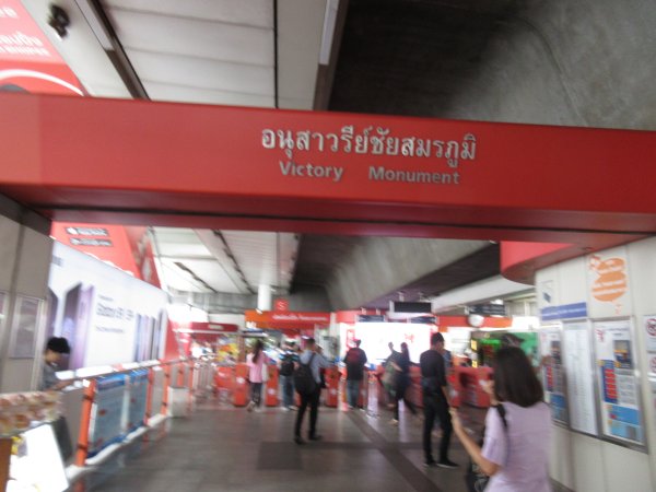 モーチット駅からBTSスクムビット線に乗り、次にどの駅に停まるかがとても分かり安い駅です。それはビクトリーモニュメントが電車から見えるからです。そのビクトリーモニュメントを囲むごとく、あみだくじの横線をスキップするときのように線路が半円を描いています。ビクトリーモニュメント周りのパヤタイ通りに沿ってペデストリアンデッキがありますが、円周にはなっていなく210度くらいで、私の利用する166のバス停は左側にあるのに反時計回りで行くことになります。