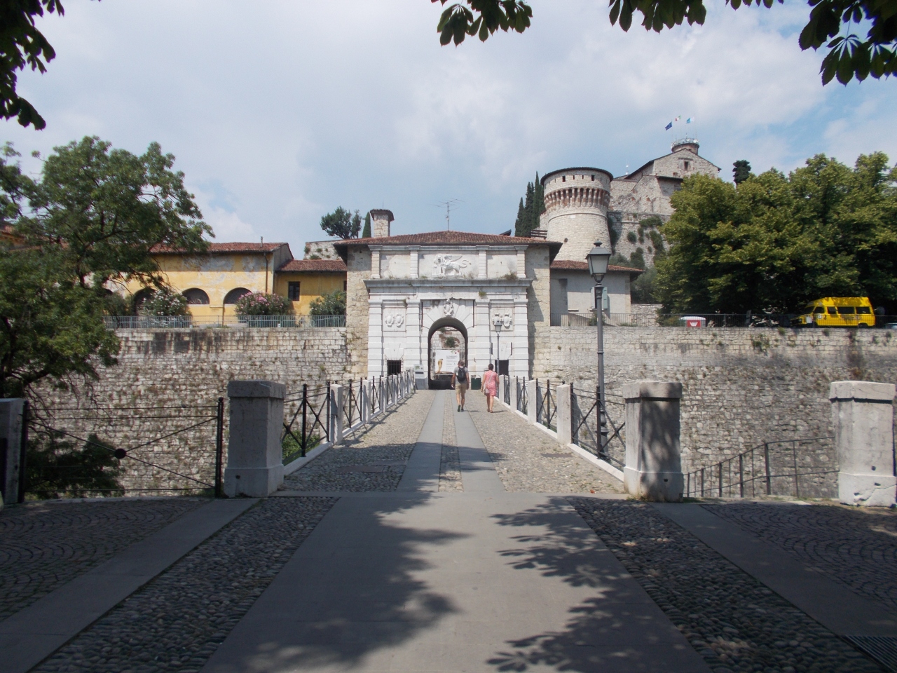 このブレシア城は旧市街地の北東の位置にあります。丘の上の城です。城は城壁や城門のほかに一部館や塔なども残っています。大きな城で城門を入ってからも館まで時間と距離があります。内部には城塞博物館などいくつか博物館があります。強固な城です。