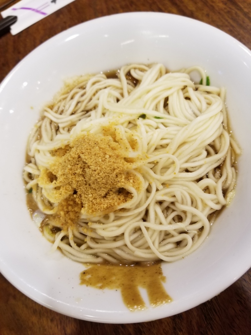 東門駅6番出口を出て数分のところにあります。移転したようでガイドブックに載っている場所とはちょっとだけ違っていました。外観もだいぶ変わっているので注意が必要です。お目当ての汁なし担担麺は辛さはなくゴマだれ麺といった感じ、もう少しパンチが効いているものを期待していたのでちょっと期待はずれ感はあるものの美味しかったです。