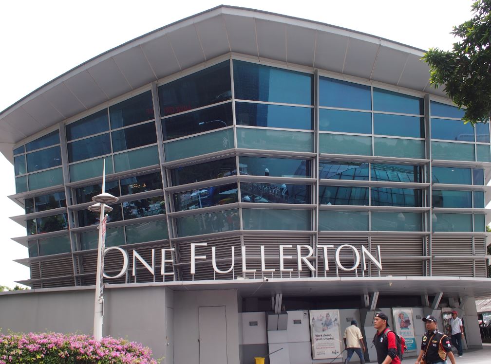 Jubilee Bridgeからマリーナベイサンズを眺めながら海辺のプロムナードを下って行くと逆台形の施設が見えて来ます。ワンフラトン(One Fullerton)はマーライオン見物の後のうってつけの休憩場所です。窓際の席は常に満席のようです。