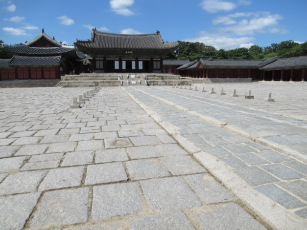 ソウルの5大王宮のひとつである昌慶宮を見学しています。明政門を通って内部に入ると正面には正殿である「明政殿」が見ることができます。この場所は即位式などが行われた場所、創建は1483年ですがその後焼失し1616年に再建されています。その後昌慶宮は幾たびの火災の中で明政殿の焼失は免れ現在に至っています。現存する朝鮮王宮の正殿では最古の建築物となっていて国宝に指定されています。また正殿への中央の道は王様が歩きますがその両側には位階に従って整列するための目印である石柱が並んでいます。王の権力がここでも見ることができますね。この広場を囲んでいる周囲の行閣も素晴らしいです。時間をかけて見学してくださいね。