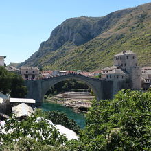 モスタルの代表的な観光スポットともいえるスターリモスト橋を中心とする旧市街はとても美しいです。現在は、それほど遠くない昔に戦争があった地であることを感じさせないくらい観光客で賑わっていますが、破壊された建物や物乞いの子どもなど、戦争の傷跡が垣間見えました。