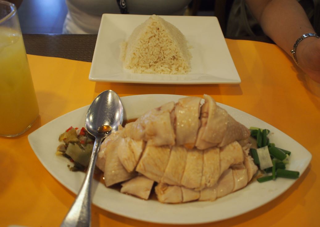 シンガポールのチキンライスの名店と聞いてちょっと不便でしたが地下鉄とタクシーで行きました。開店前でしたが少し待って入れました。サイドメニュもありましたが迷わずチキンライスをオーダー。やはり屋台とかで食べるより上品な味でした。