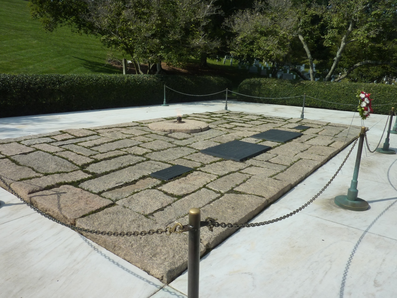ケネディ元大統領のお墓は少し高い丘の上にあり、比較的入口からもアクセスしやすい場所にありましたが、園内はとても広く日射を遮るものがほとんどないので、夏の暑い時期の散策は少し大変だと思います。