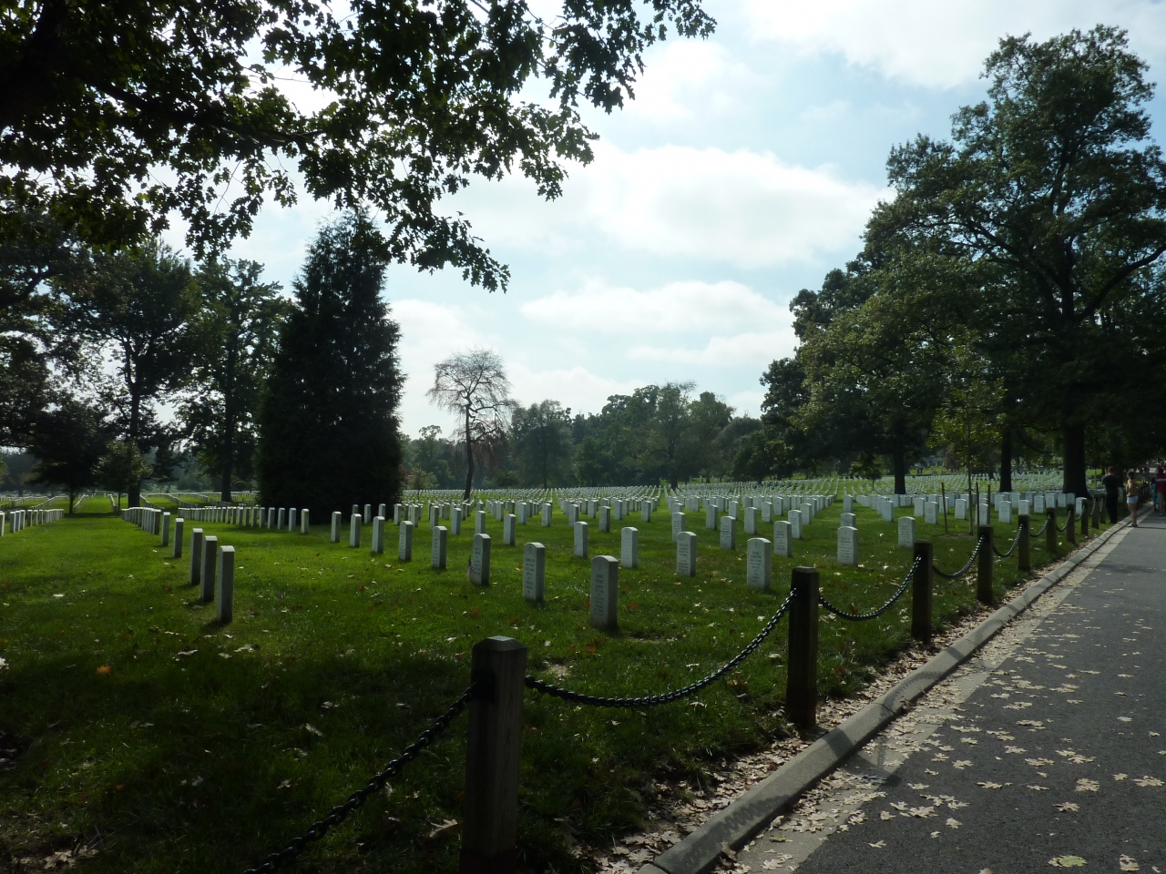DCからポトマック川を渡ったバージニア州にある墓地公園。緑の芝生の中に戦没者軍人などの白い墓石が整然と並んでおり、とても圧巻です。