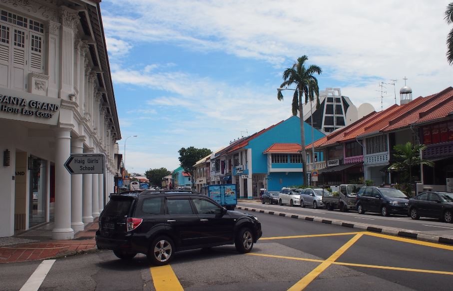 カトン地区はシンガポールのやや郊外と言った感じで駅前以外は高層ビルも少なくのどかな感じです。イーストコーストロード(East Coast Road)は東西え走る幹線道路ですが所々にプラカナンハウス群やカラフルなペイントの住居群があります。