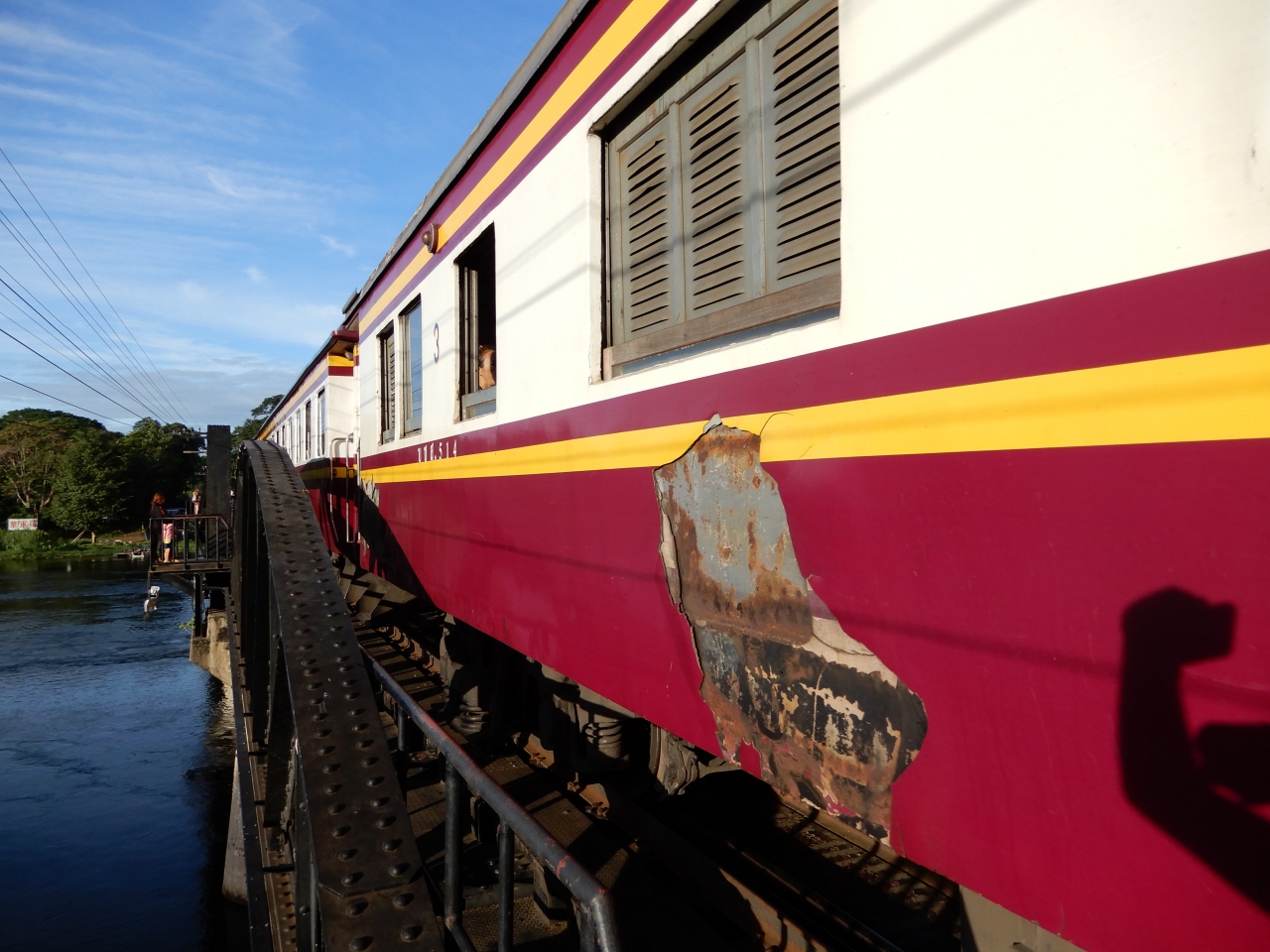 かって日本軍が建設した泰緬鉄道を追い求めて、現存する区間のバンコクのトンブリー駅からナムトック駅まで乗車しました。保線がいまいちの上に使用する車両の更新も遅くて老朽化が進んでいるのに対し、高速道路や一般道の拡充が進み中長距離バスの利便性が高まっているため、速度や快適性では見劣りする状況が続いています。ただ車窓から見える風景に味わいがあり、旅愁に関しては鉄道旅の方が一枚上だと思います。