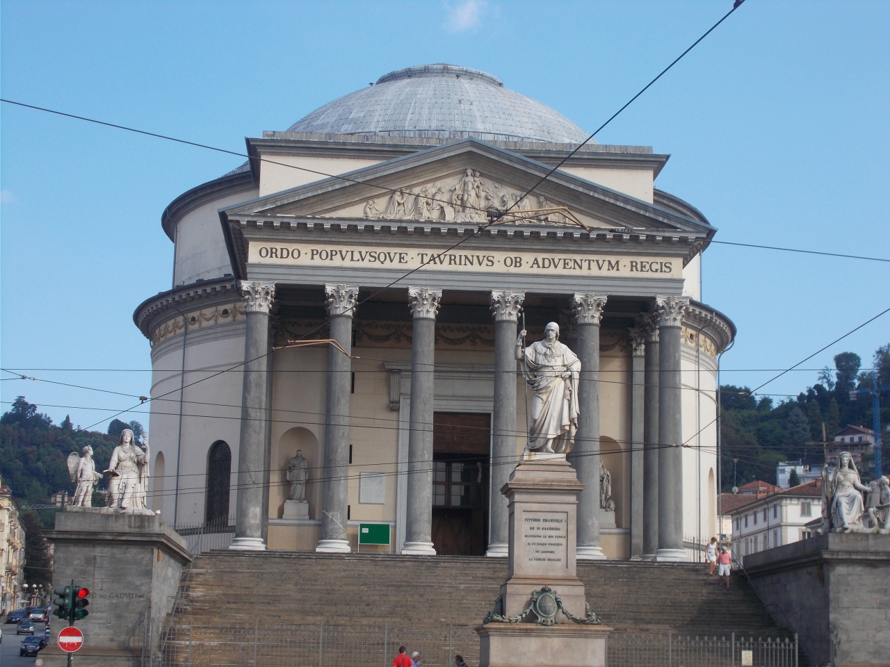 このグラン・マッドレ・ディ・ディオ教会は町の東側を流れるポー川の対岸にあります。王宮のあるカステッロ広場からポー通りを進みヴィクトリ・エマニュエル1世橋を渡るとあります。聖堂のような円形の作りです。ローマ時代の建物のような外観です。