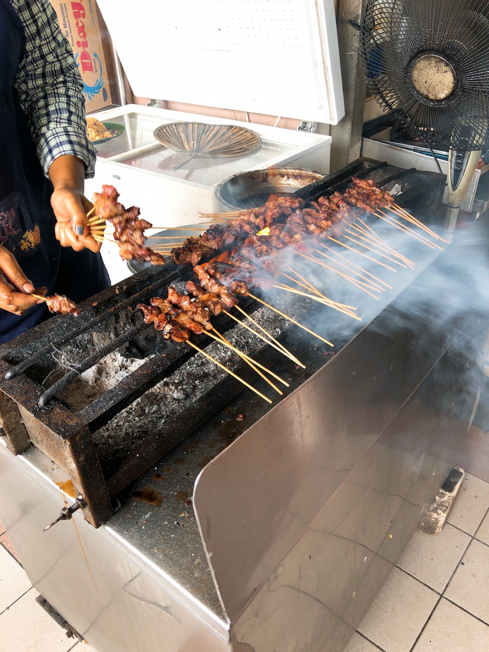トラベラーnakamasananiwaタイチョー一押しのラーキンバスターミナル3階にある激ウマジャワサテ。独特な黒い秘伝?のタレにつけられて出されるジャワサテ大変旨し。唸りながら頂きました。いつもバスの時間ギリギリで到着するので、3階を覗く余裕さえありませんでしたが、次回からはバス一本ぐらい逃してもこの為に時間を作る価値があると思えました。特にマトンが美味しかったです。